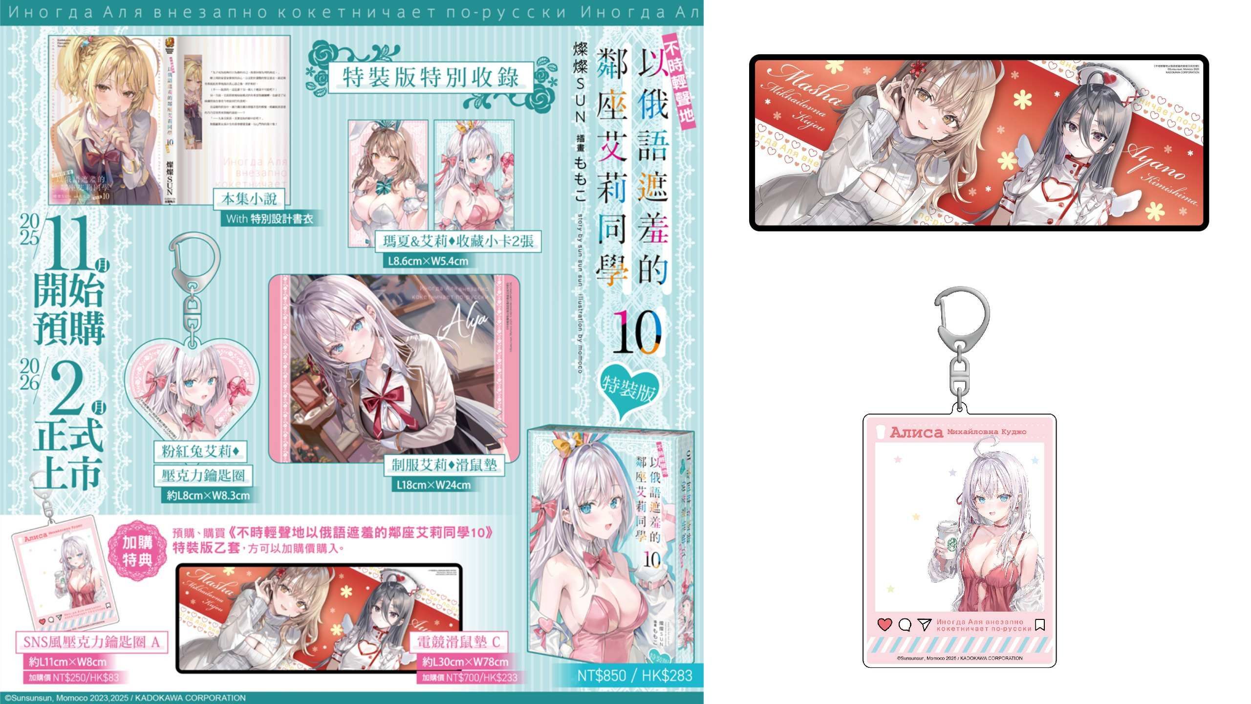 • 動漫節搶先預購 免運 艾莉同學(10) 特裝版+加購特典- SNS風壓克力鑰匙圈A+電競滑鼠墊C+紙箱 角川 26年2月預購
