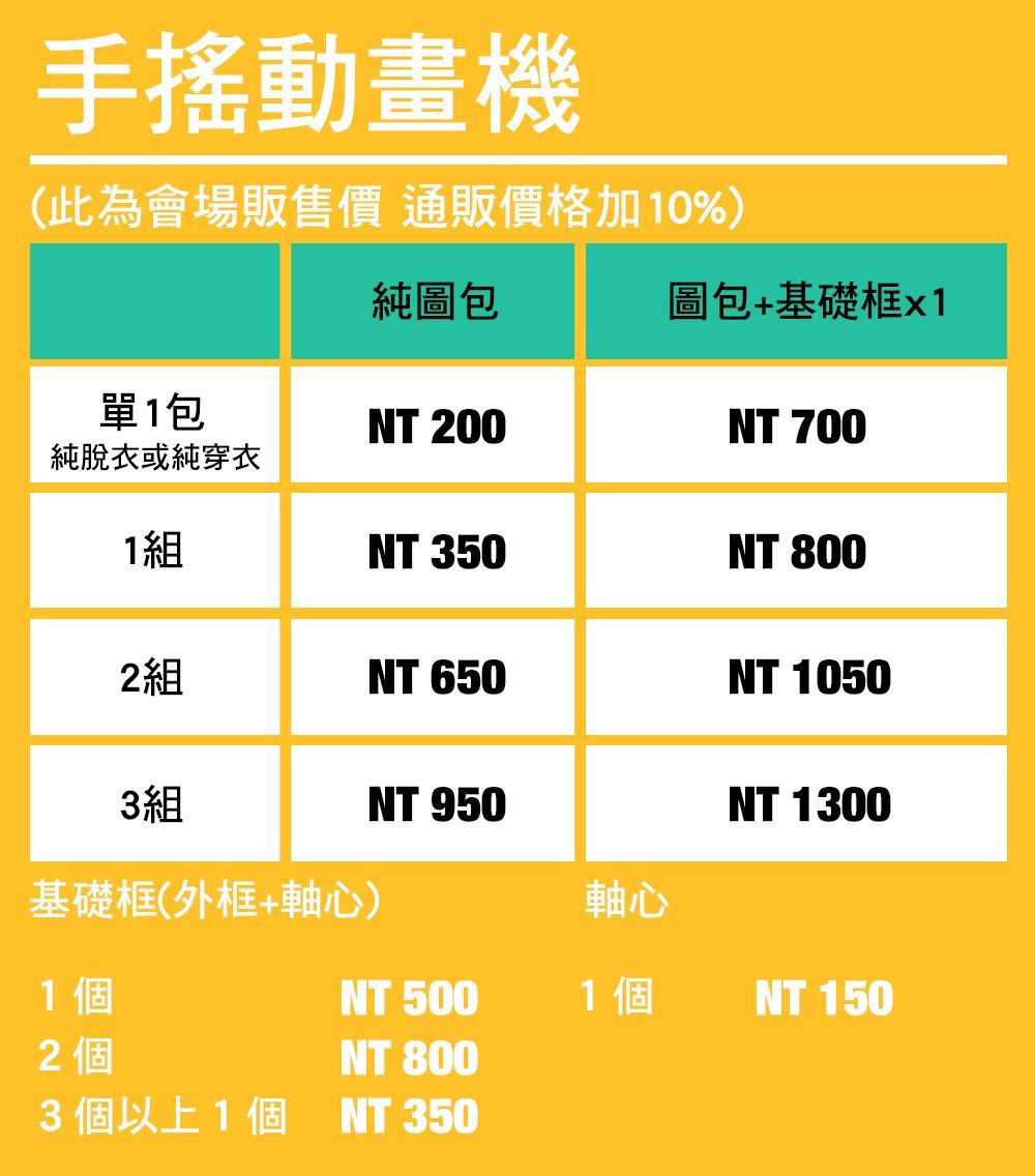 基礎包:內含1組圖包+基礎框(框+軸心)1個