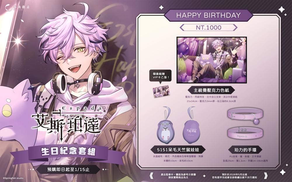 一般預購 (預購商品2026年5月出貨)『Timaeus諦覓司』艾斯珀達生日紀念套組!(內含壓克力色紙、娃娃、手環)