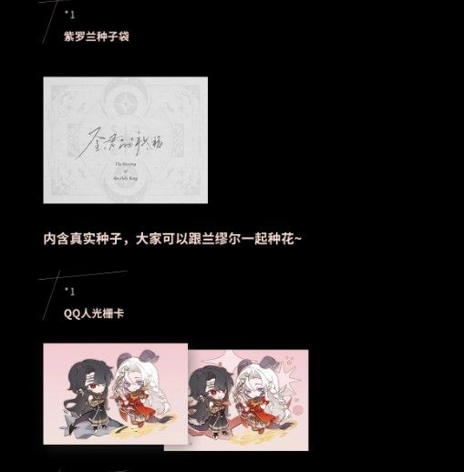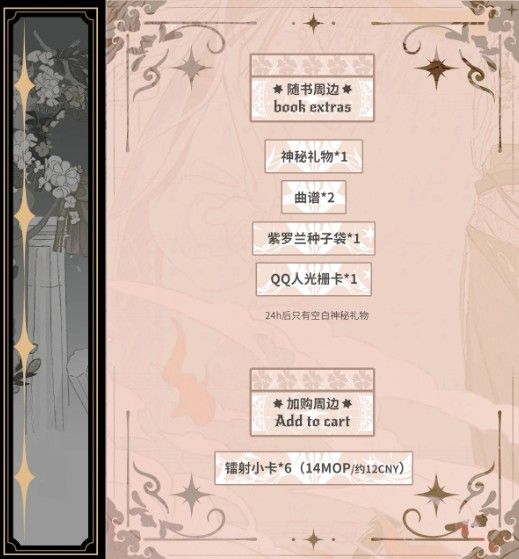 前24小時:本子*1 + 神秘禮物*1 + 曲譜*2 + 紫羅蘭種子袋*1(裡面不會有種子) + QQ人光柵卡*1
