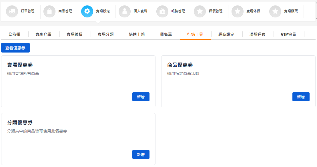如何建立賣場自訂優惠券?