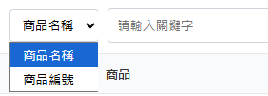 (2)要搜尋關鍵商品,可透過上方搜尋關鍵字bar,可使用『商品名稱、商品編號』兩種方式進行搜尋。