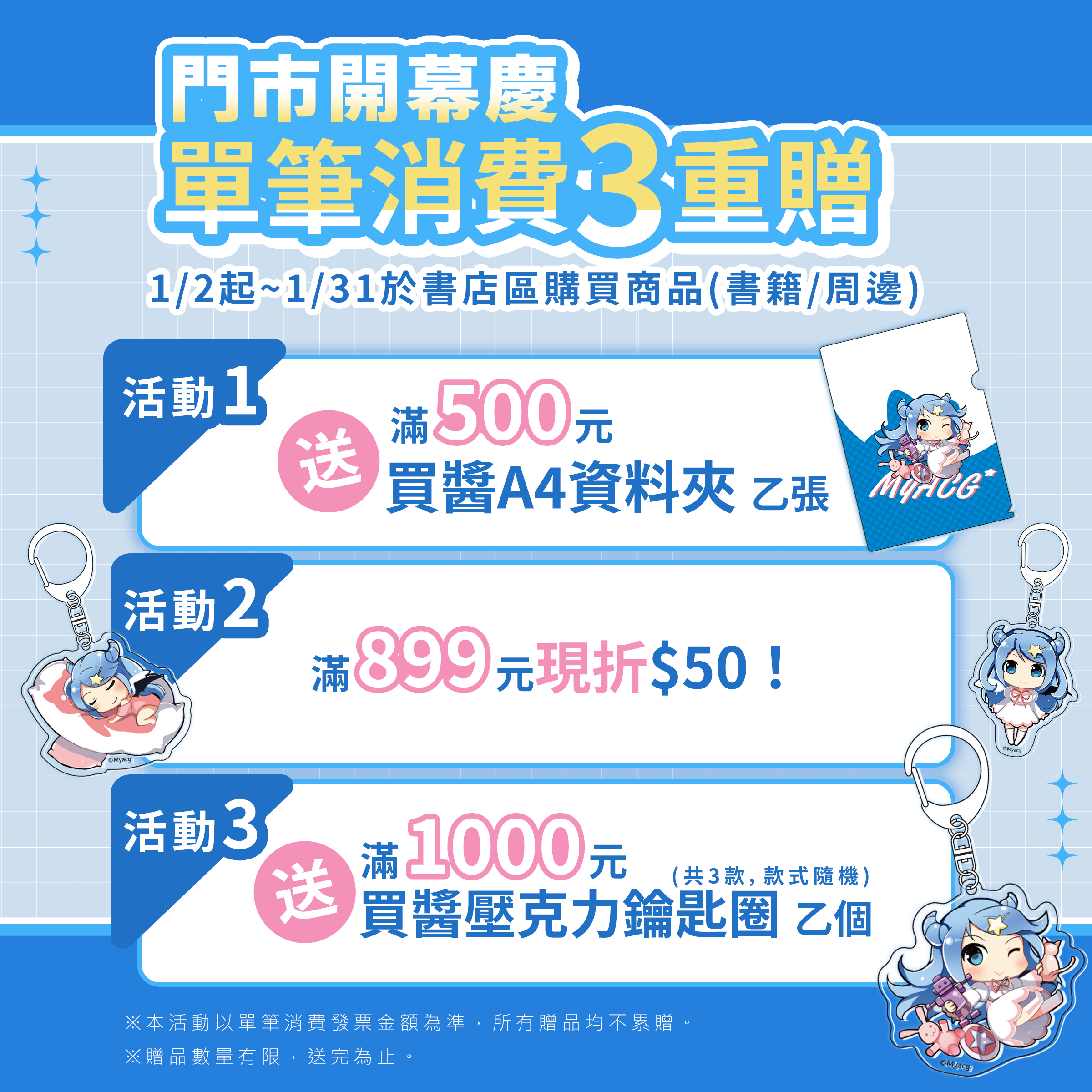 書店區商品(書籍/周邊)單筆消費三重贈:
